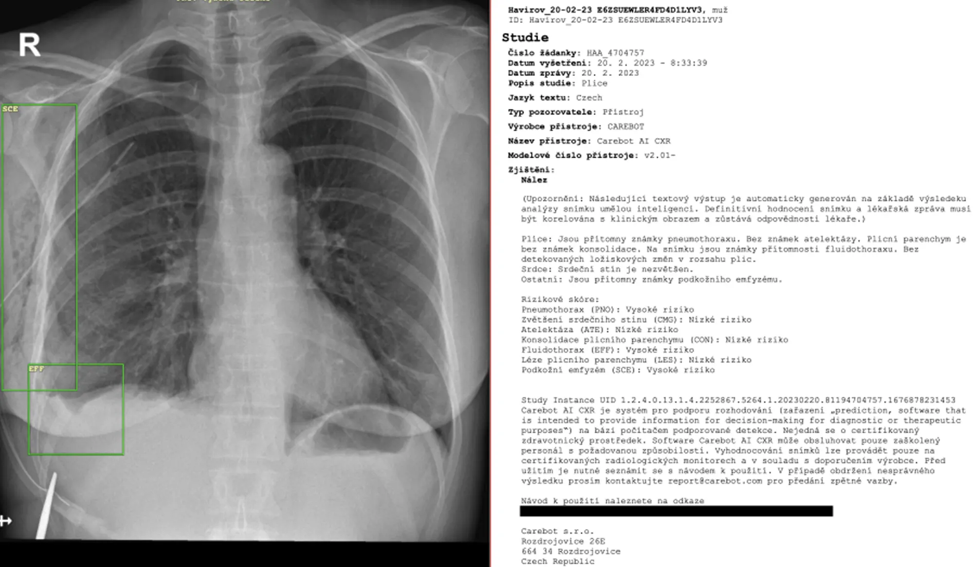 Findings detected: 7 (atelectasis, consolidation, pleural effusion, pulmonary lesion, subcutaneous emphysema, cardiomegaly, pneumothorax)